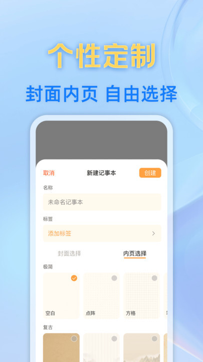 3、支持对笔记内容进行自定义分类管理,方便用户高效整理与快速查找所需内容,同时还提供了多种背景模板以及内页背景切换的功能。