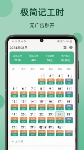 极简记工时是一款为用户量身定制的高效时间管理与薪资计算工具。其简洁易操作的界面让工时和薪资记录变得轻松便捷,保障每一笔收入都精准无误。而且,该工具打扰,借助多种统计模式,用户能清晰了解自身的薪资分布状况。