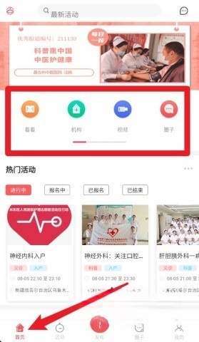3、点击底部的“活动”按钮,即可查看即将开展的医疗活动。