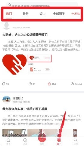 4、进入“圈子”板块浏览热门帖子,参与发布内容与互动交流,以便知晓同行的观点和动态。