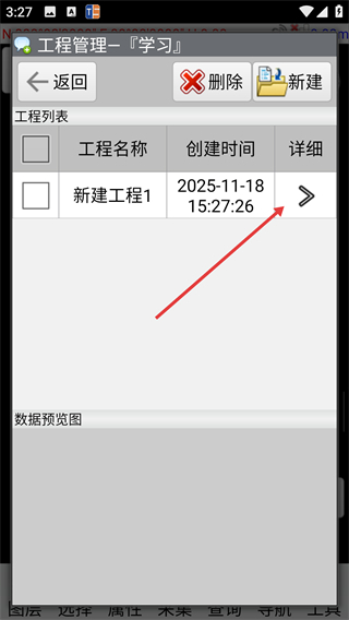 3、在工程列表界面,点击新建工程对应的详细按钮,即可进入工程详细信息页面。