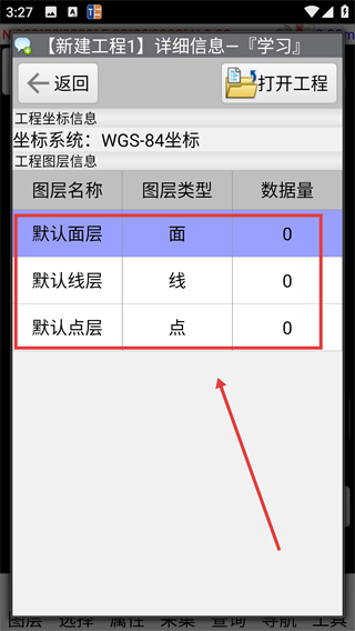 4、在工程详细信息页面查看该工程的坐标系统与图层信息,以此完成工程创建操作。