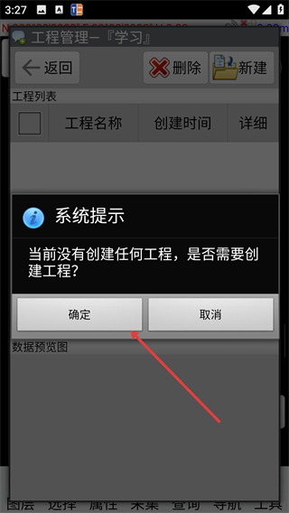 1、点击系统提示窗口里的【确定】按钮,即可进入新建工程界面。