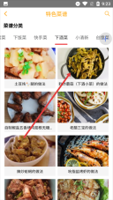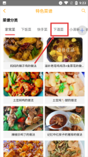 2、进入【特色菜谱】页面后,在【菜谱分类】板块里找到并点击【下酒菜】标签,即可切换至下酒菜类别的菜谱列表页面。