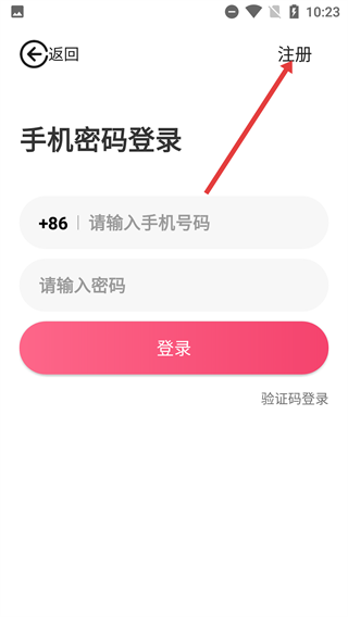 3、打开手机密码登录页面后,点击页面右上角的【注册】按钮,系统将跳转至账号注册界面。
