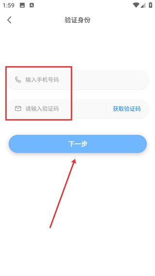2、进入身份验证页面后,先输入手机号码,接着点击【获取验证码】,待收到验证码并填写完毕,最后点击【下一步】,就能完成密码重置操作。