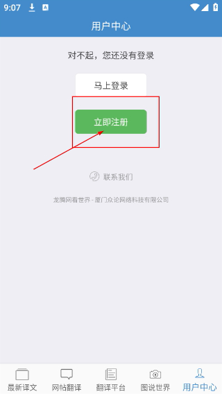 2、进入【用户中心】页面,要是页面显示未登录状态,点击【立即注册】按钮,就能开启该账号对应的注册流程。