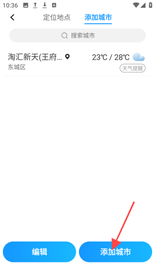 3、进入【添加城市】页面后,点击页面底部的【添加城市】按钮。