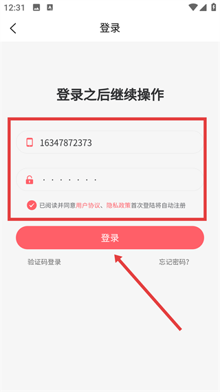 4、在密码登录界面的表单里填入手机号和密码,勾选相关协议后点击【登录】按钮,即可完成账号登录流程。
