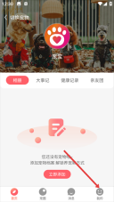 1、在显示【相册-大事记-健康记录-亲友团】的页面,点击底部的【我的】按钮,即可进入能够操作宠物档案相关内容的个人界面。
