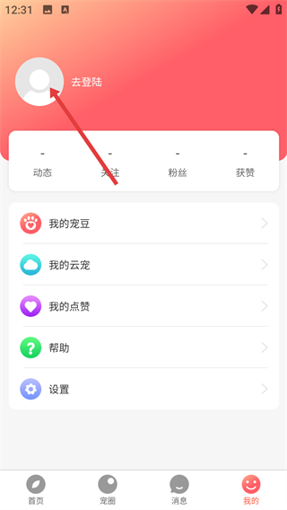 2、在显示有【我的宠豆-我的云宠-我的点赞】的页面中,点击【去登录】按钮,即可进入账号登录的操作界面。