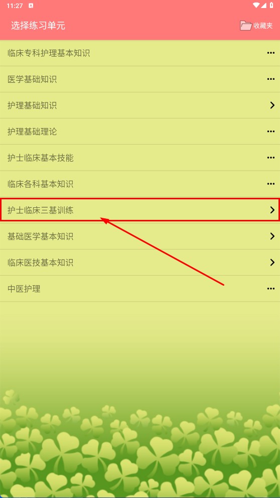 2、选择【护士临床三基训练】这一单元,开展临床护理三基知识的针对性练习。