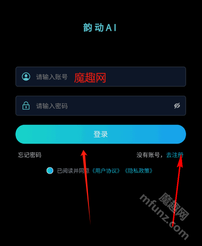 3、填写账号密码登录个人账号,若还未注册,也可点击“去注册”选项来创建新账号