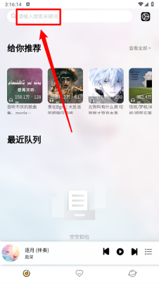 1、支持以关键字检索或语音搜索的方式查找歌曲,搜索结果会同步呈现歌词内容与专辑封面。