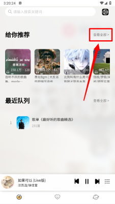 1、打开简约音乐,在主页点击"查看全部"进入。