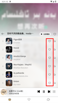 3、涵盖多首歌曲资源,点击右边的小爱心即可。