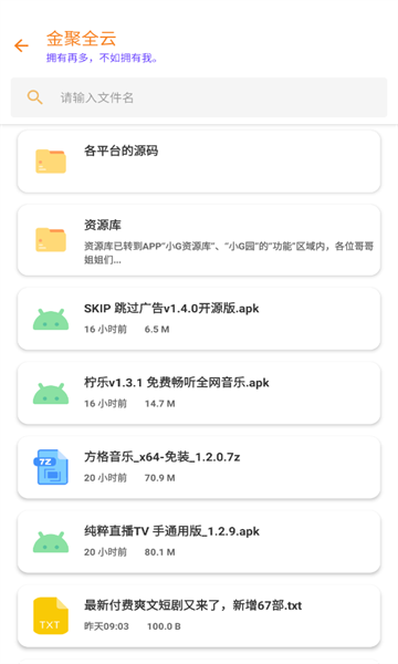 金聚全是一款汇聚海量手机资源的应用,包含各类热门应用、游戏、视频、图片、音乐等内容。用户能在金聚全里迅速找到想要的资源,并且可以直接下载到手机中,操作简单便捷。