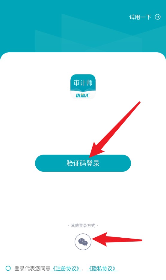 1、打开后,既可以选择验证码登录,也能点击下方的微信图标完成微信快捷登录。