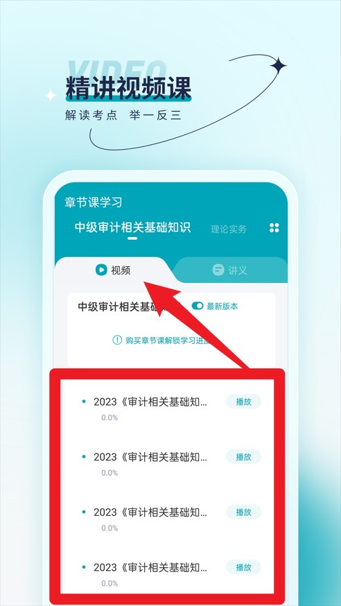 3、视频课程分类明确,提供章节精讲与反复观看功能,助力用户深入领会核心内容。