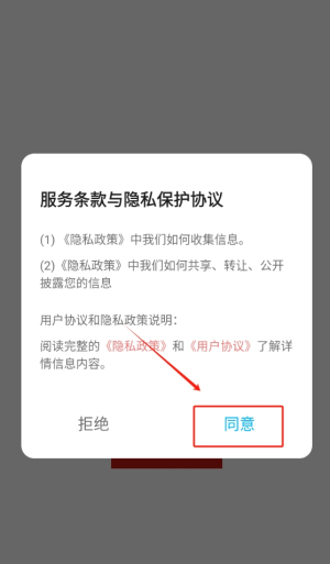1、请点击同意按钮进入应用界面,在此之前请确保您已仔细阅读并充分理解相关条款,这样才能顺利开启对该软件各项功能的使用。