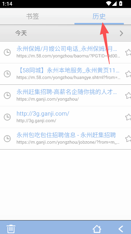 2、进入书签 / 历史页面、查看过往浏览记录。