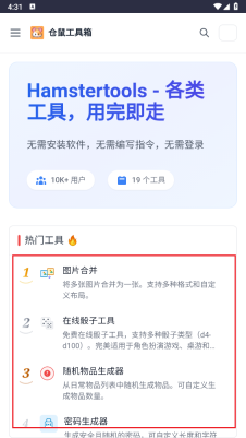 你是否在寻找一款全能且轻便的工具箱来满足各类小需求?不妨试试仓鼠工具箱,这款App整合了多种实用工具,从单位换算、计时器到二维码生成、手电筒等一应俱全,体积小巧不占内存,无需复杂操作,一键打开就能使用。