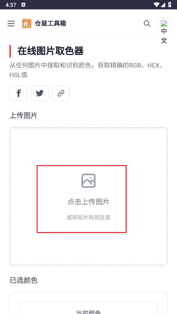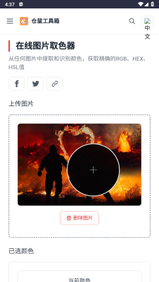 1、打开软件,下滑找到"图片取色器"点击进入。