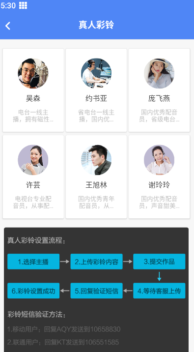 2、在“真人彩铃”功能里提交你想要的配音内容,就能让主播为你录制专属的彩铃啦。