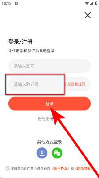 4、输入收到的验证码,勾选“注册登录即同意”的相关选项后,点击登录按钮,即可完成操作。