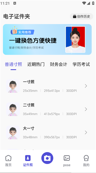 2. 提供了丰富多样的证件照尺寸规格选项,用户能够依据实际需求挑选合适的尺寸,一键即可生成所需的证件照。