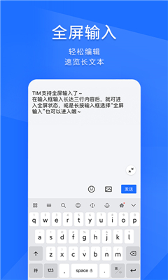 TIM 还具备全屏输入、收藏服务、电话会议等丰富功能。全屏输入功能让用户能便捷地编辑和浏览长文本内容;收藏服务则支持用户直接将各类工作文档、图片收藏至收藏夹。