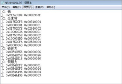 3、用记事本打开进入编辑,在这里面可以输入金手指的作弊码。