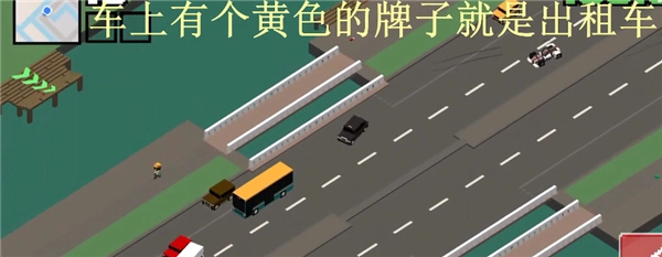 3、在马路上寻找一辆带有黄色牌子的出租车,上车后,解锁出租车,前往地图上标有红色圈圈标志的地方。