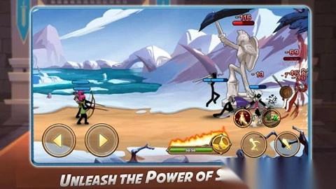 1、进入战斗界面后,通过简单的操作指令控制火柴人进行攻击、闪避与技能释放,流畅的动作系统让打击节奏十分紧凑。