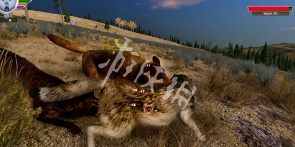 2、在中间山上的狼领地里找,但记住先在三个领地里都跑一遍,每个领地至少遇一条野狼(进入领地,按“V”键进入嗅觉模式,顺着黄色的亮点可以找到野狼)。