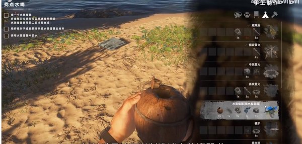 初期:优先收集棕榈叶和木材搭建简易庇护所,寻找稳定淡水来源