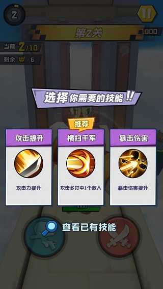 2、玩家每成功突破一层关卡,在下次战斗开始前,就有机会从三种随机技能中挑选一个。选择技能后,通过结合组合连招的运用,能助力你快速通关。