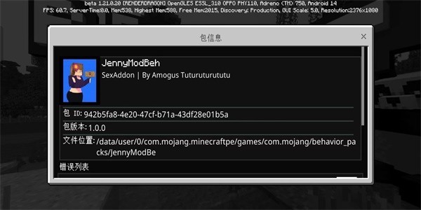 8.点击设置——资源包或行为包,选择“JennyModBeh",点击激活