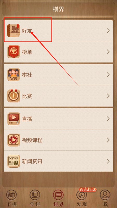1、在棋界页面选择好友