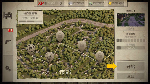 5、然后可以开始进入第一个地图关卡。选择第一个位置市郊,然后单击开始按钮。