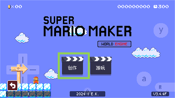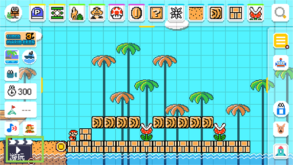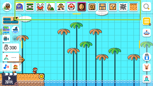 游戏提供了经典的《超级马里奥兄弟》、《超级马里奥兄弟3》、《超级马里奥世界》和《新超级马里奥兄弟U》等多种风格与物理引擎的关卡模板。你可以使用游戏中所有的经典元素——砖块、水管、敌人、陷阱、道具等,自由组合,从零开始构建一个充满巧思或极致难度的全新关卡。