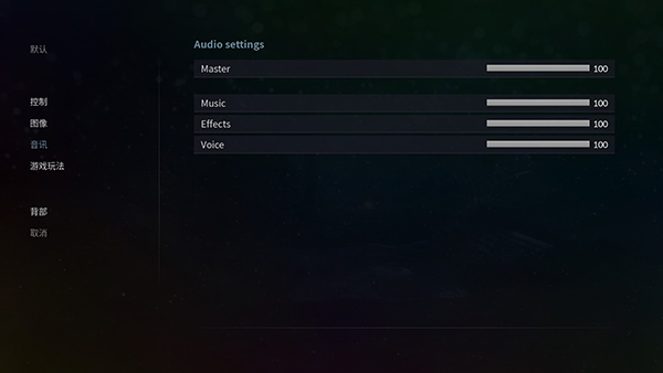 5、改成中文之后,在音量选项中支持调整游戏的背景音效、对白以及音乐的音量大小;