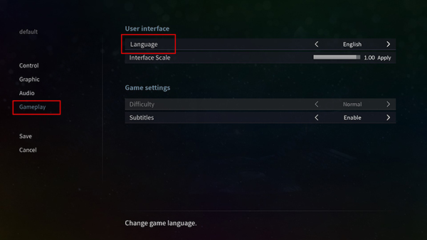 4、点击Gameplay,将Language那一栏改为Chinese Simplified,然后保存即可;