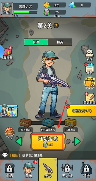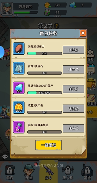 2、完成主线剧情任务和日常挑战,积累金币和经验,解锁更高级武器与配件提升战力。