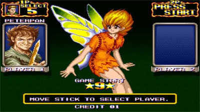 游戏为经典的清版动作模式。玩家可选择五位角色之一:彼得·潘、小叮当、双刀战士、胖子和水手。基本操作包括攻击、跳跃和必杀技。通过攻击可积累能量,能量满后即可释放全屏攻击的超级必杀技。游戏过程中可以解救被困的孩子们以获得额外奖励,并支持最多四人同时合作游玩,乐趣倍增。