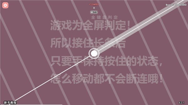 3、游戏为全屏判定,接住长条后,只要手保持按住的状态,怎么移动都不会断链。