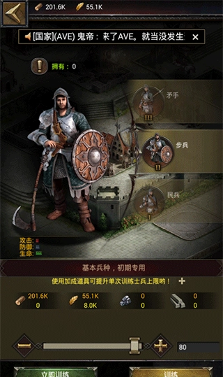 其次,谈谈部队属性。低级部队属性所需资源极少,务必尽早点满。对于中级部队属性,优先提升步兵的体力与防御,其次是车兵的攻击力。完成这些后,可以先点领导属性,之后再补齐其他部队属性。