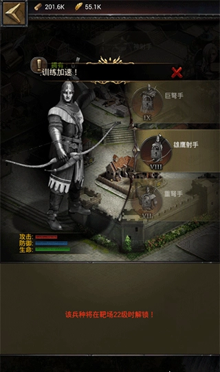 兵种强化系统现已开启对步兵、骑兵、弓兵以及车兵的强化功能,每种兵种均设有四个强化方向。以步兵为例,游戏内针对步兵开放了攻击、生命、防御以及受到伤害减免这四个方向的强化。领主大人们,只要通过强化提升了任意一项属性,您所有等级的步兵都会……(你这里文本似乎没写完,可补充完整后我再为你完善)