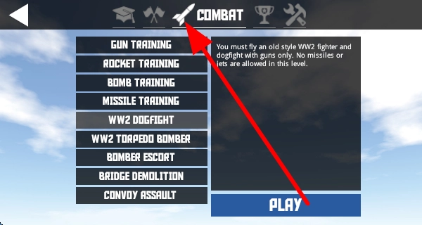 1. 在战斗训练界面,挑选不同的训练项目,像枪械训练之类,点击“PLAY”,开启相应的飞行训练任务。