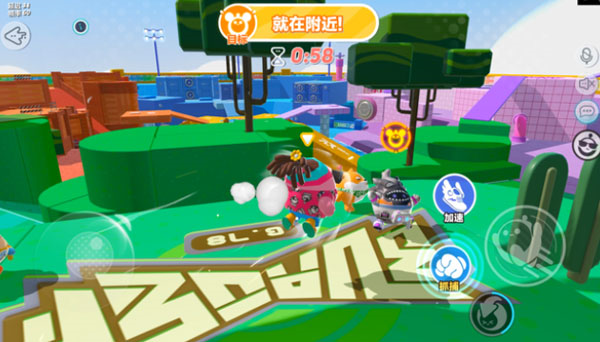 4、正式开始后,左下角轮盘滑动操控角色移动,右侧是跳跃和冲刺碰撞按钮!